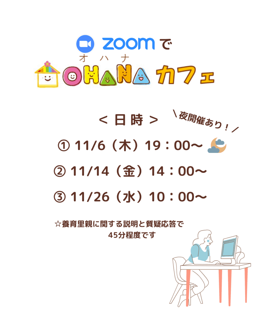ZOOMでOHANAカフェ11月開催のお知らせです。