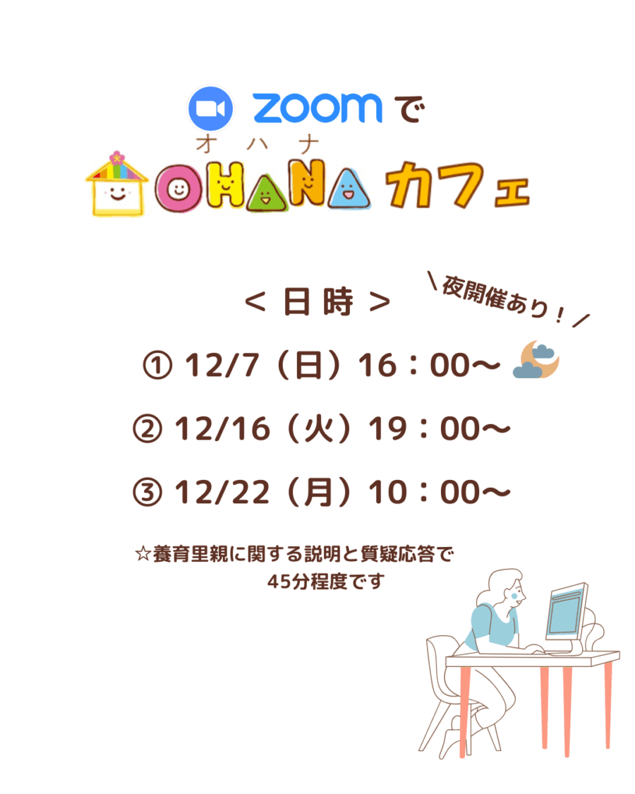 ZOOMでOHANAカフェ12月開催のお知らせ