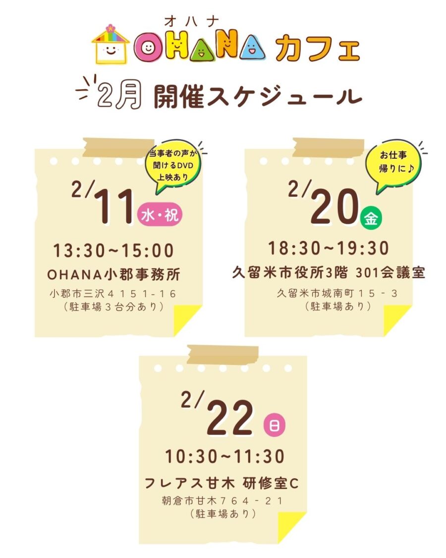 ①2/11(水・祝)13:30~15:00 OHANA小郡事務所(小郡市三沢4151-16 駐車場3台分あり)